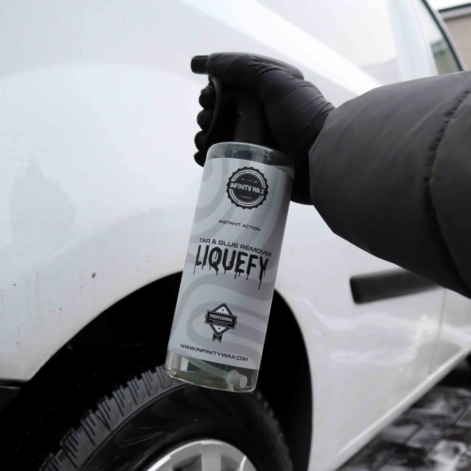 How To Use: Spray Liquefy directly on to areas of your vehicle with built-up tar and glue deposits. The product will quickly break down these contaminants allowing you to either rinse them away or remove using an appropriate cloth. Do not allow Liquefy to dry on your paintwork or glass. If you are unsure an area is safe to have Liquefy applied, test in a hidden area first. Do not use on any un-painted plastics.