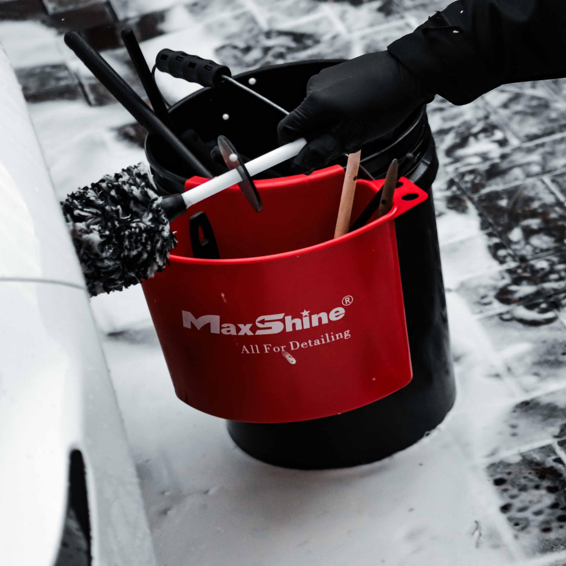 The Maxshine Bucket Buddy complements a bucket by providing vital storage space that’s within easy reach when you’re detailing.